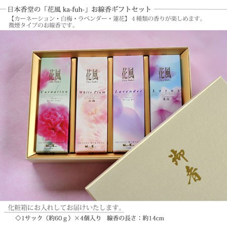 - 【線香 花風4種セット 化粧箱でお届けします】