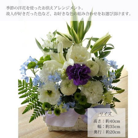 - 【生花アレンジメント】高さ約40cm×幅約35cm×奥行約20cmでお作り致します。
