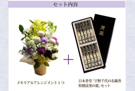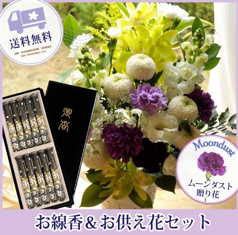 お供え線香セット ムーンダストお供えアレンジLサイズ+黒塗箱入り特選薄墨の桜