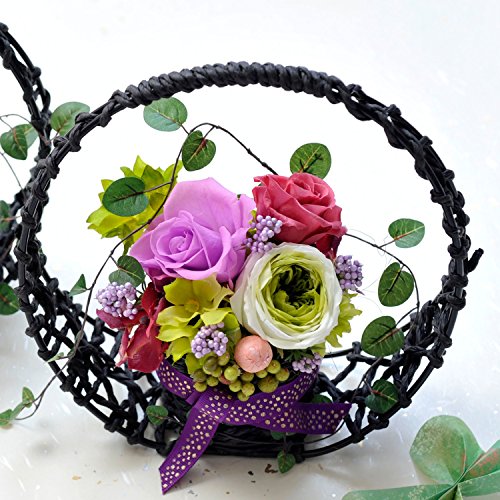 - 枯れないお花(プリザーブドフラワー)とアートの小物を使っているので、長く飾って楽しめます。