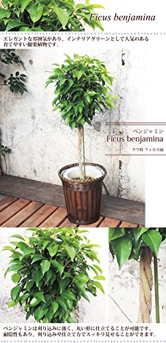 クワ科フィカス属 エレガントな雰囲気があり、インテリアグリーンとして人気のある育てやすい観葉植物です。 ■商品サイズ…ベンジャミン Lサイズ 全体高さ:約80~90センチ 全体幅:約30~40センチ ベンジャミンは刈り込みに強く、丸い形に仕立てることが可能です。 耐陰性もあり、刈り込みや仕立て方ですっきり見せることが出来ます。 ベンジャミンは「幸福をもたらす木」として知られる観葉植物です。 花言葉は「永遠の愛、友情、信頼、結婚」 開店祝いや結婚祝い、ギフトなどでも多用されています。