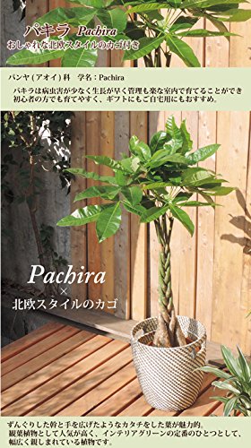 ◇パキラの育て方◇ 【日当たり】 日当たりのよい場所を好みます。 夏の日差しは強すぎるので、強い日差しは避けて育てると良いでしょう。 冬は最低温度5℃以上で、明るくできるだけ暖房の効いた暖かい室内で育てます。 【みずやり】 土の表面が乾いたら水遣りをしてください。 夏ごろの生育期はよく水を吸うので、乾かしすぎないように注意してください。 【管 理】 5月から9月まで緩効性の化成肥料や液体肥料などを与えます。 【植え替え】 鉢の底から根が出て、根詰まりを起こした時や新芽の伸びが悪い場合は、 春の植え替えをおすすめします。 植え替え時期は春の5月上旬から6月までに行います。 ■商品サイズ…パキラねじり 全体高さ:約75~85センチ 全体幅:約30~40センチ 植物のため、形や葉量など異なる場合がございます。 IKEAのカゴを使用しております RAGKORN 80213776