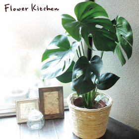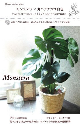 モンステラ + 丸バナナカゴ 【白色】高さ50センチ~60センチ (monsu)