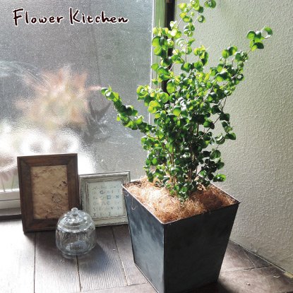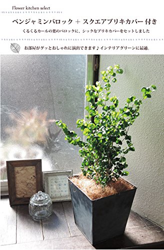 ベンジャミンバロック ブリキブラックスクエアカバー付き ヤシ繊維付き