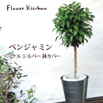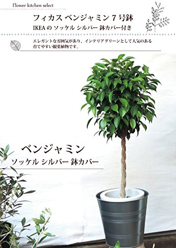 ベンジャミン Lサイズ 7号鉢I KEAの ソッケル シルバー 鉢カバー付き