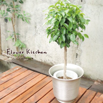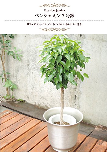 ベンジャミン Lサイズ 7号鉢I KEAの ハッセルノート シルバー鉢カバー付き