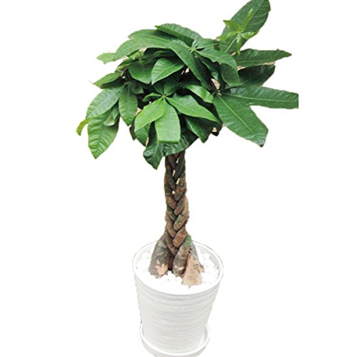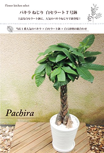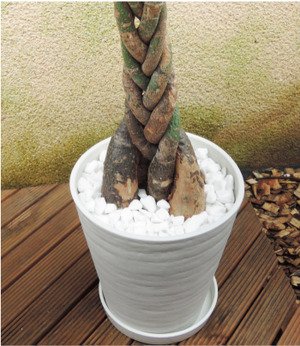 パキラねじり 白セラート鉢 7号鉢 白砂利入り