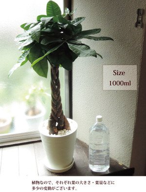 ◇パキラの育て方◇ 【日当たり】 日当たりのよい場所を好みます。 夏の日差しは強すぎるので、強い日差しは避けて育てると良いでしょう。 冬は最低温度5℃以上で、明るくできるだけ暖房の効いた暖かい室内で育てます。 【みずやり】 土の表面が乾いたら水遣りをしてください。 夏ごろの生育期はよく水を吸うので、乾かしすぎないように注意してください。 【管 理】 5月から9月まで緩効性の化成肥料や液体肥料などを与えます。 【植え替え】 鉢の底から根が出て、根詰まりを起こした時や新芽の伸びが悪い場合は、 春の植え替えをおすすめします。 植え替え時期は春の5月上旬から6月までに行います。■商品サイズ…パキラねじり 全体高さ:約70~80センチ 全体幅:約30センチ 植物のため、形や葉量など異なる場合がございます。