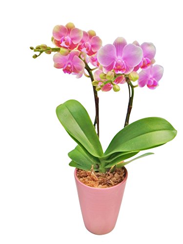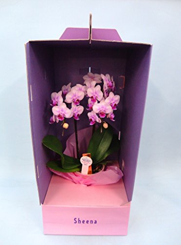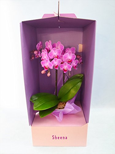 産地直送の花ギフト 椎名洋ラン園のミディ胡蝶蘭 2本立ちピンク系 4号鉢 ドレスBOX入り