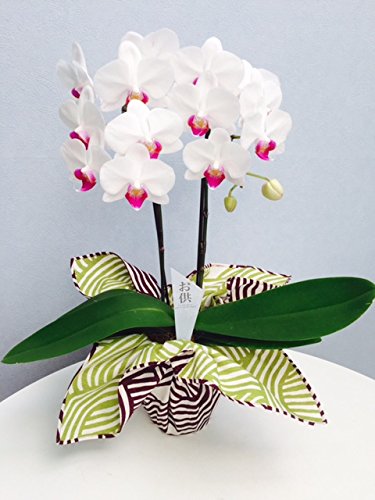 産地直送の花ギフト 椎名洋ラン園のミディ胡蝶蘭2本立ち4号陶器鉢 ホワイト系お供え用 風呂敷包み