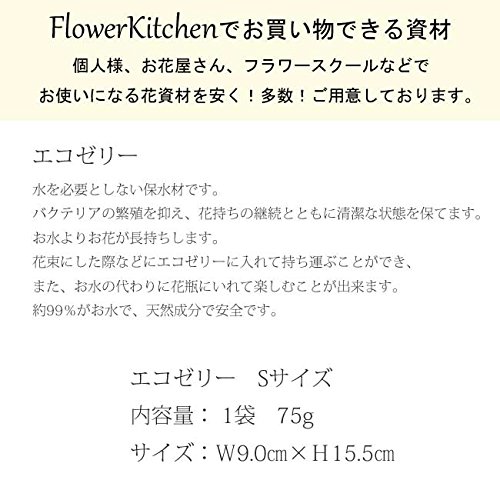 水を使用しない保水材です。バクテリアの繁殖を抑え、花持ちの継続とともに清潔な状態を保てます。花束を持ち歩く際の保水材としての利用のほか、お水の代わりに花瓶等に入れてもお使いいただけます。
