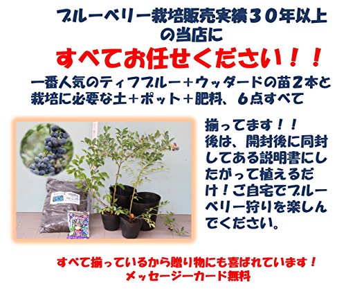 [暖地向ブルーベリー入門すべて揃ってます]ティフブルー+ウッダード2品種栽培6点セット[直径15cmポット約50cm前後ブルーベリー苗2本+専用栽培土10ℓ+直径21cmポット+有機肥料]