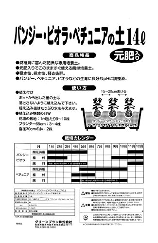 グリーンプラン 培養土 パンジー・ビオラ・ペチュニアの土14L