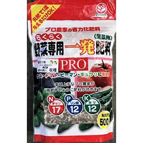 化成肥料と2種類の被膜尿素を配合したナス、トマト、ピーマン、キュウリなどの果菜専用の元肥一発肥料です。