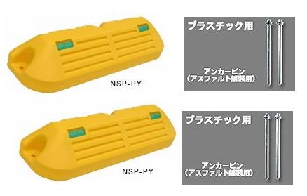 - 駐車場のプラスチック製・車止め(カーストッパー)NSP-PY 幅550mm高100mmイエロー アスファルト用ピン付き 2個セット