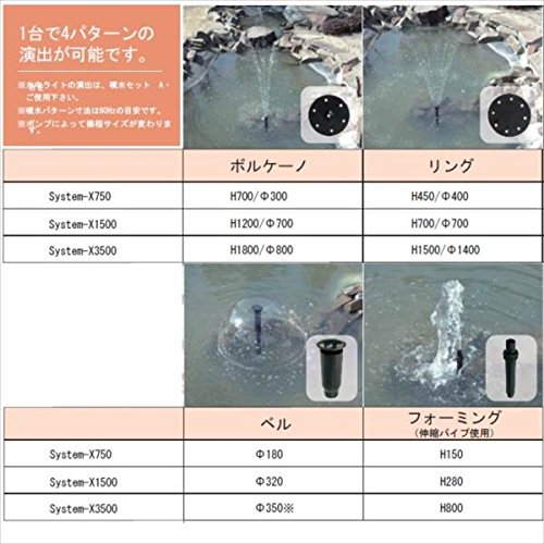 ●4種類のノズルとポンプのセットです。簡単に噴水が楽しみたい方にオススメのセットです。