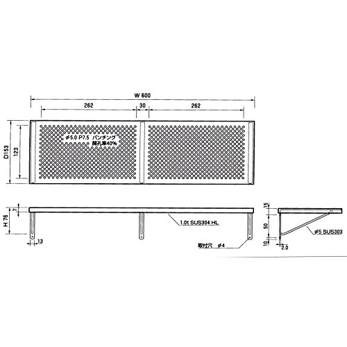 KGY ステンレス パンチ棚 600ミリ巾 日本製 P-600