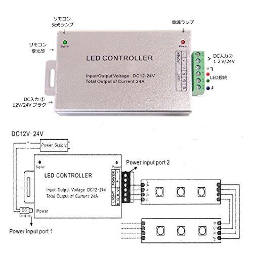 - 大容量 24アンペア RGBフルカラーLEDテープライト用コントローラです。