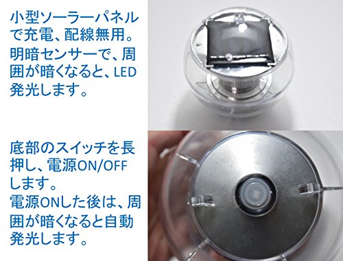 - ソーラー 充電式 の LED ガーデンライト です。 球体 デザイン ですが、地面にしっかり設置できます。また、防水仕様 なので、 池 などに浮かせて使用できます。