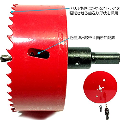 選べる ホールソー 22サイズ(50mm~155mm) 電動ドリル ボール盤 対応 木工 塩ビ プラスチック アクリル 発泡スチロール 用 穴あけ 道具 器具 (80mm)