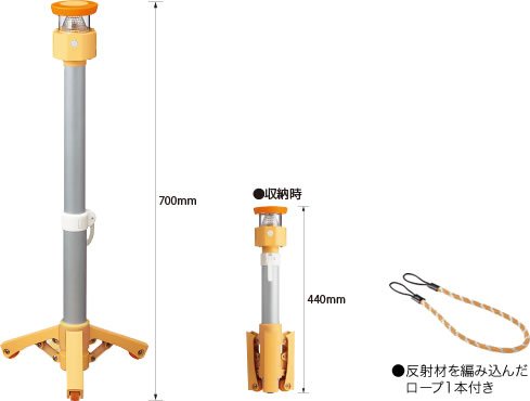 - ●停電時の避難誘導に便利なLED付きのポールパーティション。●仕様/LEDポール●サイズ/使用時:Φ280×H700mm、収納時:Φ95×H440mm、支柱直径:Φ43mm●LED点滅機能付き、単2乾電池2本で24時間点灯(乾電池は別売)●材質/支柱:アルミ、ヘッド・脚:ABS、ヘッドカバー:TPE、キャスター:TPE・PP、ロープ:PP ●質量/約1.1kg(乾電池除く)●反射材を編み込んだロープ(φ10mm×長さ1m)1本付き