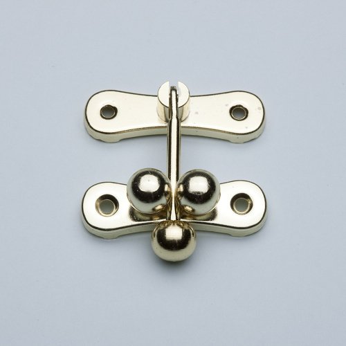 木箱の留め金具です。【特長】・材質は鉄で、真鍮メッキ仕上げ【使用方法】・取付け場所が硬い時は下穴を開けてから付属木ねじをご使用下さい。