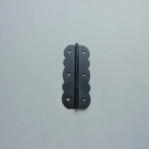 軽い小物の民芸品などの丁番に。【特長】・64mmの花型丁番を、黒塗装で仕上げました。【使用方法】・取付け場所が硬い時は下穴を開けてから付属木ねじをご使用下さい。