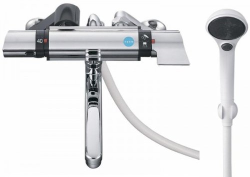 ストップ機能付ワイドシャワーで快適な浴び心地で節水もできます。触れても暑くない断熱ボディと偏心管カバーで火傷を防止。SMAサーモカートリッジを採用しており、温度安定性に優れ、急な高温吐水がありません。