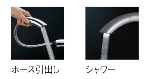 丸いデザインが優しいキッチン空間を造ります。ホースを引き出せるので、水まわりのお掃除もラクラク