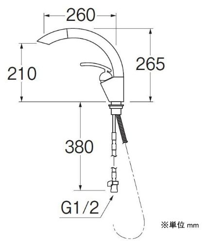 仕様 シャワー吐水のみ 吐水口:110度回転 引出しホースの長さ:1.2m 取付足の径:35mm 取付穴径:36~40mm 取付ロックナット対辺:38mm JISマーク付