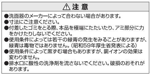 洗面器の排水口に使用するゴミ受です。銅イオンがぬめり、悪臭を抑えます。パンチングは丈夫でお手入れが簡単です。コンタクト・小物の落下防止、パイプのつまり防止に。
