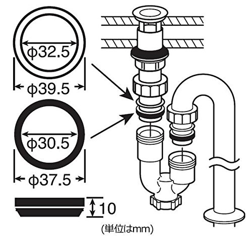直径32ミリの排水管に差し込んで使用するパッキンです。ねじれを防止するスベリパッキン付きです。