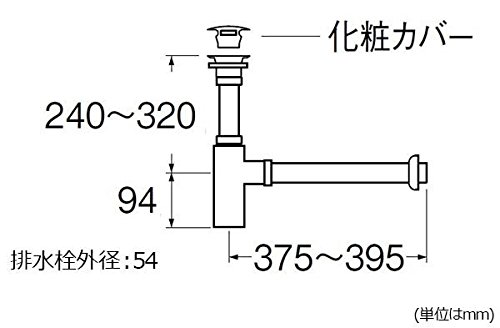 排水栓外径54、化粧カバー、アジャスト付のボトルトラップです。