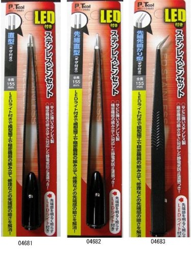 P.Tool LED付き ステンレスピンセット 3種セット(04681・04682・04683) 04688