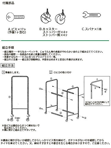 セット内容 タイヤラック×2、カバー×2、ビス×17、キャスター×8、スパナ×1、組立説明書