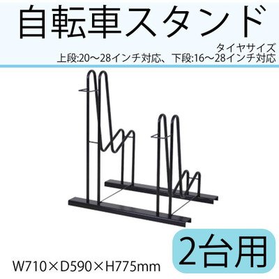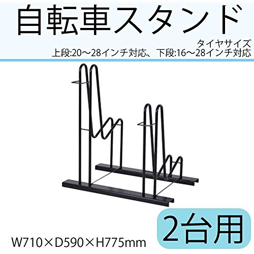 仕様 組立式 【収容可能タイヤサイズ】 上段:20~28インチ 下段:16~28インチ タイヤ幅5cm以下 ※自転車の前カゴの形状によっては収納できない場合あり。