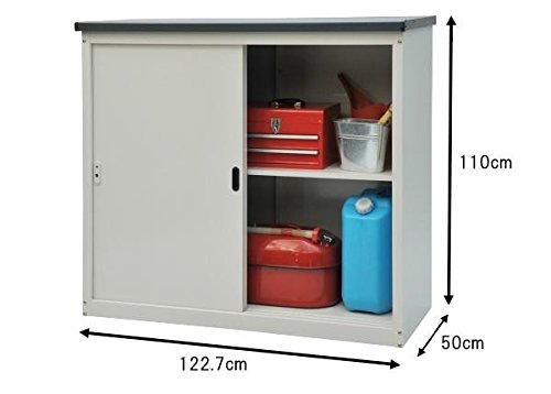 - ベランダ・軒下等の狭い場所、ガレージ等のサイドスペースに最適。天板は内側から止めるので、ビスが外側から見えず綺麗で安全です。扉には鍵(オープン及びクローズの表記付き)も付いていて安心設計。強度があり熱に強く、汚れにも強くなっています。ドライバー1本で組立可能です。 サイズ W122.7×D50×H110cm 個装サイズ:53×127×13cm 重量 30kg 個装重量:19500g 素材・材質 スチール製・粉体塗装 仕様 組立式 棚板ピッチ:22段階(3.1cmピッチ) 耐荷重:底板20kg・棚板20kg 内寸:W113.0×D35.3×H98.0cm 有効開口部(片側):W54.0×H98.0c