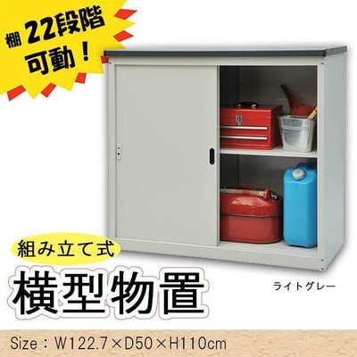 安心・安全設計の横型物置 組み立て式 横型物置 AD-1211 ライトグレー