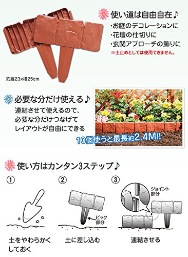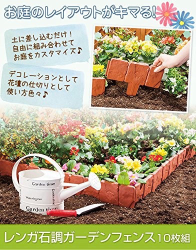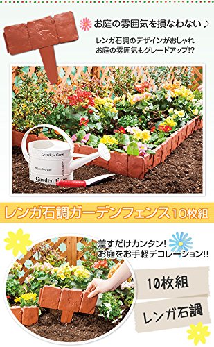 お庭のレイアウトがキマる!差すだけカンタンお手軽デコレーション用ガーデンフェンス10枚組。内容量/10枚組 サイズ/約縦23×横25 カラー/レンガ色 素材・材質/ポリプロピレン 製造国/中国