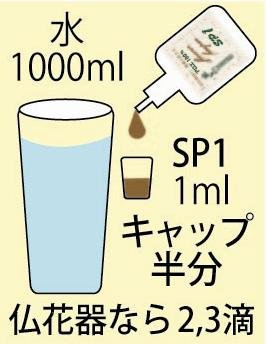 ●1000倍希釈水(水1000mlに対し、SP1キャップ半分(1ml))
