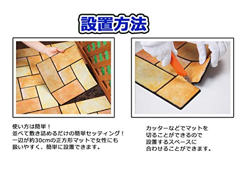 - 並べて敷き詰めるだけの簡単セッティング。カッターでカットできるので、スペースに合わせて設置できる