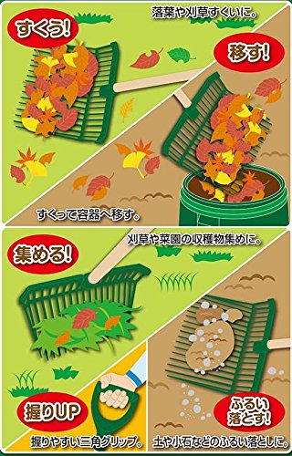 ●落ち葉や刈草すくいに。●すくってそのまま容器などに移せます。●刈草や菜園の収穫物集めに。●土や小石のふるい落しに。●握りやすいグリップ。●用途:すくう、移す、集める、ふるい落とす等のガーデン作業●全長:約1200mm●重量:約890g●頭部幅:約380mm●注意:葉や草以外のすくい作業には使用しないでください。破損の原因になります。重い土や重い小石のふるい作業には使用しないでください。テコには使用しないでください。破損の原因になります。使用後は汚れを取り除き、紫外線や雨風のあたらない屋内に保管してください。●ABS樹脂、ポリプロピレン、鉄(ポリエチレンコーティング)●製品サイズ:長さ1200×高さ195×幅380、重量892g