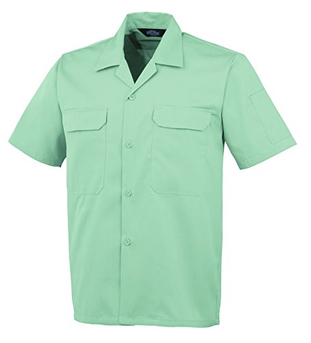 【春夏素材作業服・作業着】 春夏素材の半袖シャツです。 防汚性能と着心地のバランスを追求して生まれたニュータイプの吸水防汚加工。 ベーシックでクラシックな開襟の前ボタンデザイン。衿吊りには抗菌消臭効果のデオドラントネーム採用。 右胸携帯電話収納ポケット付き。 サイズ 胸囲 肩巾 袖丈 着丈 S 100 42 23 68 M 106 44 24 70 L 112 46 25 72 LL 118 48 26 74 3L 124 50 26 76 4L 130 52 26 78 5L 140 54 27 80