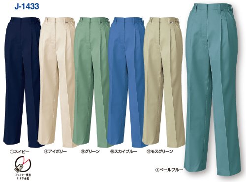 【秋冬素材作業服・作業着】 上着と同じ生地を使用したレディースツータックパンツ。 内側に透け防止裏地付き。 JIS T8118帯電防止基準を満たす優秀素材ウエア。 ベーシックなソフトツイル素材と魅力的な価格で汎用性抜群です。