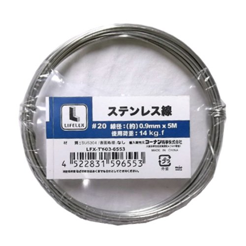 サイズ(線径):約0.9mm×5M使用荷重:14kg.f材質:SUS304表面処理:なし