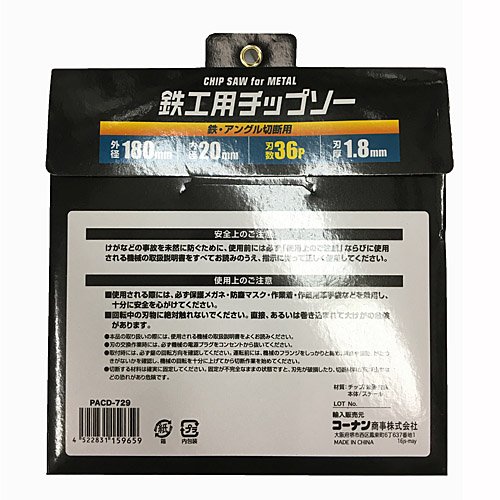 コーナンオリジナル PROACT 鉄工用チップソー 180mm 36P PACD-729