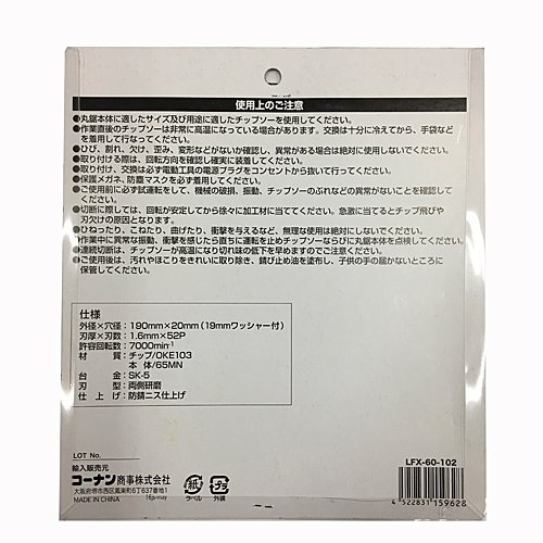 ●サイズ:外径190mm 穴径20mm 刃数52P 刃厚1.6mm