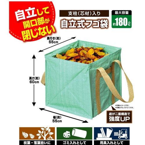 ●支柱(芯材)入りで袋が自立。開口部が閉じないのでものの出し入れが簡単。