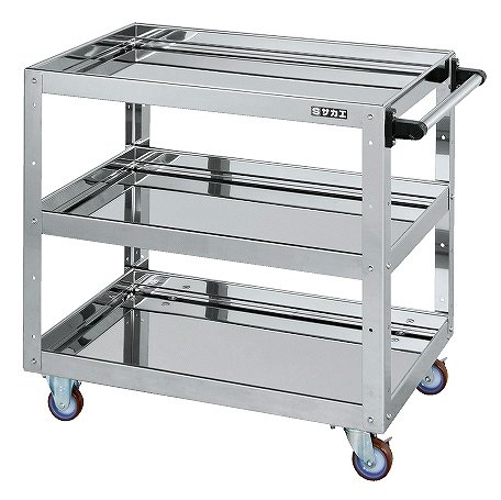 堅牢・安全・美観 三拍子揃った新しいワゴンです。 人にやさしい棚板形状です。