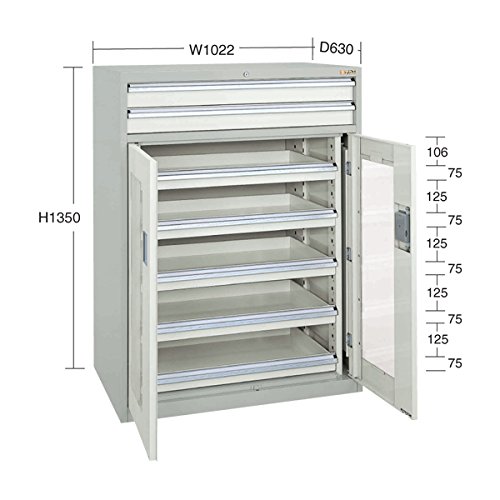 ●作業効率をアップし、限られた作業スペースの有効利用を図るため、使用時に扉が邪魔にならない前扉横収納式を採用した工具管理ユニットです。●扉内引出し:H75×5段●ボールスライドレール採用●ラッチ機構●アクリル扉●実用新案登録:実用新案出願中●外寸:W1022×D630×H1350mm●カラー:グレー●質量:143kg●完成品●受注生産(納期:約1.5~2ヶ月)●商品は車上渡しとなります。日曜日及び祝日の配達はできませんので、あらかじめご了承ください。●メーカー直送品に付き、お支払いは「前入金」のみの対応となります。●「代引き・時間帯指定」はできませんのでご了承ください。●離島、沖縄への配送は別途見積もりとなりますのでご了承ください。